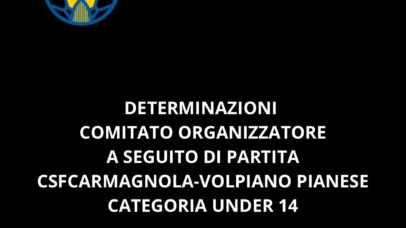 COMUNICATO UFFICIALE: DETERMINAZIONI DEL COMITATO ORGANIZZATORE SULLA PARTITA CSF CARMAGNOLA-VOLPIANO PIANESE CATEGORIA UNDER 14 DEL 31 AGOSTO 2025 DEL 45° SUPEROSCAR DEL CALCIO GIOVANILE Il Comitato Organizzatore del Superoscar, dopo lunga riflessione sui fatti incresciosi avvenuti al termine della…